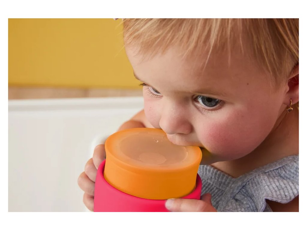 Měkký silikonový okraj umožňuje řízení průtoku tekutiny z hrnečku přiložením rtů k hrnečku a zabraňuje zbytečnému rozlití tekutiny. Čím pevněji dítě přitlačí rty k okraji, tím více tekutiny poteče. Silikonový okraj zároveň těsní a udržuje hrneček zavřený, když se nepoužívá. Široké rukojeti jsou snadno uchopitelné malými ručičkami a zároveň plní funkci uzavíratelného "víčka"