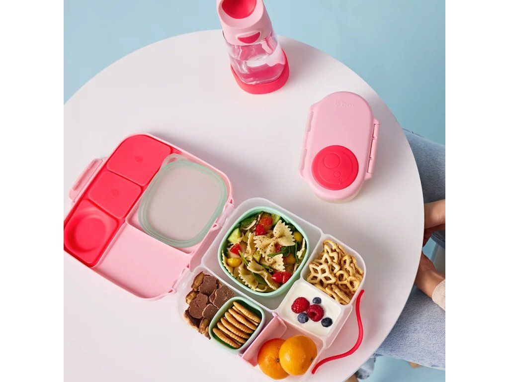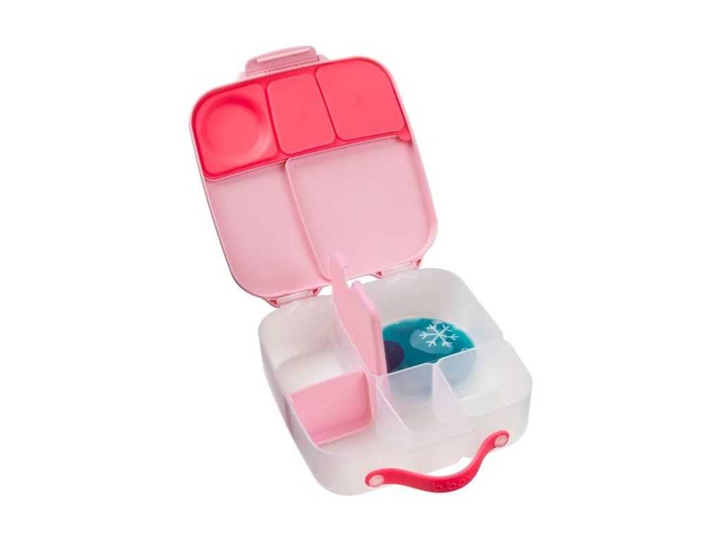 Nájdete sem oddelenie pre krajčeky chleba alebo sendvič, pod pohyblivým viečkom je ukrytý chladivý vankúšik, ktorý udrží túto dobrotu dlhšie čerstvu. Ak pohyblivé viečko odstránite, máte hneď dostatočne veľký priestor pre cestoviny alebo šalát. Jedinečne spracovanie viečka krabičky s elastickým krúžkom umožní vložiť do krabičky celé jablko! Silikonové dvojité viečko potom umožní skladovať v menších oddeleniach ovocie alebo jogurt. Niektoré vnútorné "prekážky" sú vyjímatelné a nastavitelné, takže si tento desiatový box prestaviate podľa svojej chutí a potrieb. Do lunchboxu sa vojde wrap alebo banán.