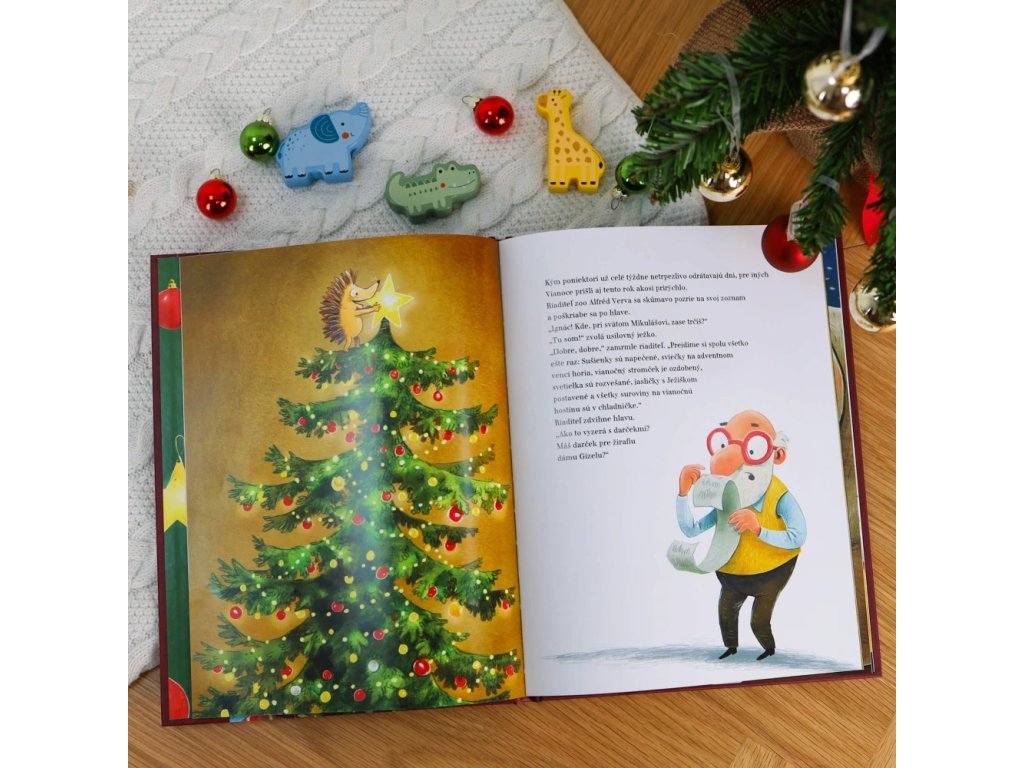 Nové dobrodružstvá zvieracích kamarátov zo série Veselé príbehy zo ZOO (Veľké čistenie zubov v ZOO, Karneval v ZOO, Večierka v ZOO a Mláďatká v ZOO) s dekoráciou v tvare vianočného stromčeka.
